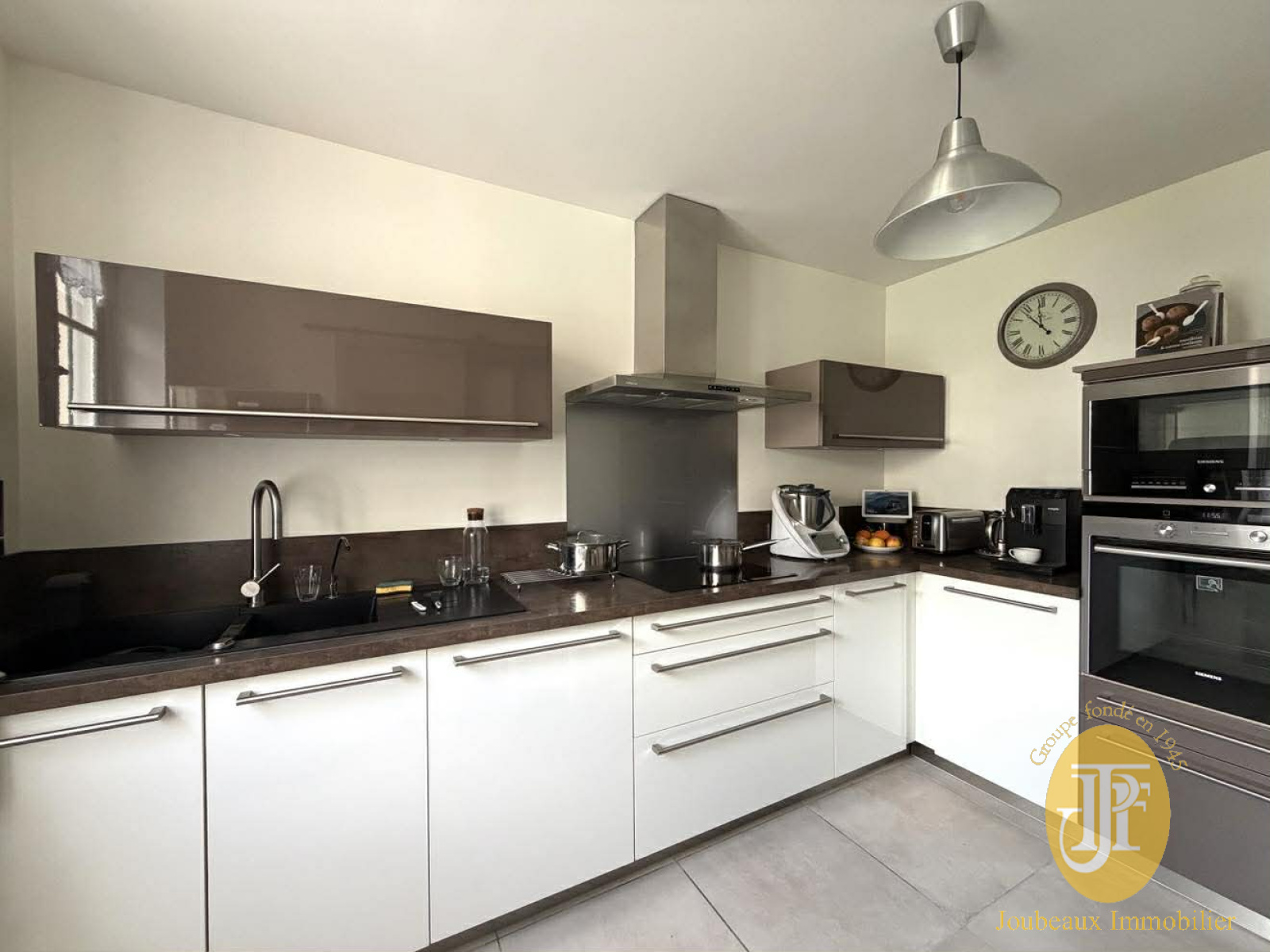 Côté extérieur, vous profitez d’un grand garage de plus de 50 m² avec porte motorisée ainsi que d’une buanderie.